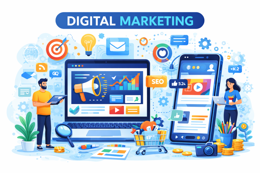 We provide strategic digital marketing solutions to increase brand visibility and reach the right audience. Our services include SEO, social media marketing, and online campaigns that drive traffic and business growth.